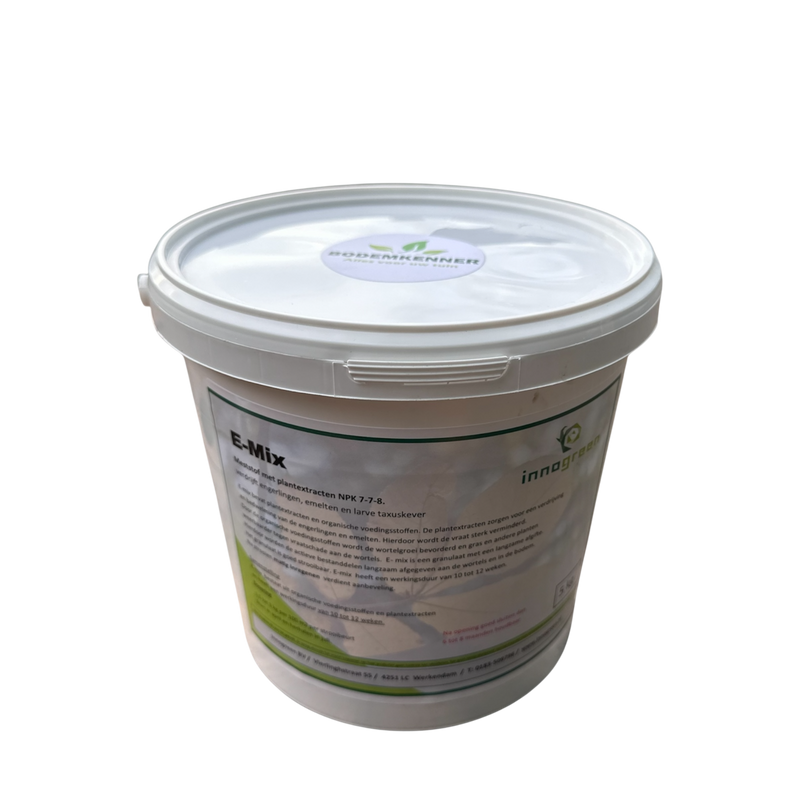 Voor een optimale bodemgezondheid en herstel van je gazon adviseren wij E-Mix van Innogreen te combineren met onze organische meststoffen en gazonverbeteraars.