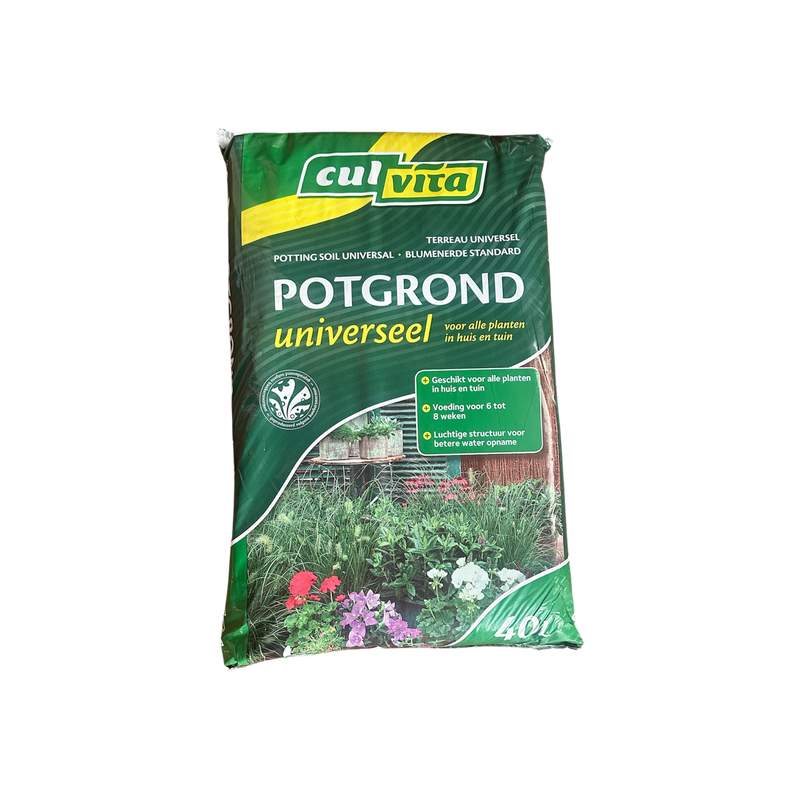 Culvita Potgrond 40L – Universele potgrond voor krachtige planten en gezonde groei Op zoek naar een betrouwbare potgrond die jouw planten echt laat floreren? De Culvita Potgrond in een 40 liter vakverpakking biedt alles wat ze nodig hebben voor een sterke start en langdurige gezondheid. Deze gebruiksklare mix is geschikt voor vrijwel alle toepassingen in tuin en balkon: van bloembakken en plantenpotten tot borders en moestuinbakken.